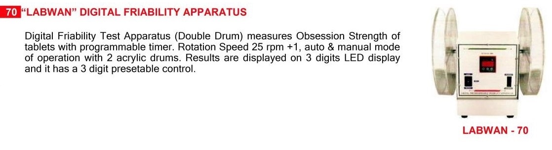 Friability Apparatus Contact Us for Pricing and Further Details of LABWAN-70 Contact Us for Pricing and Further Details of LABWAN-Digital Friability Test Apparatus