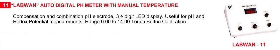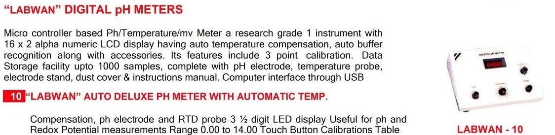 pH Meter Contact Us for Pricing and Further Details of LW-50 Contact Us for Pricing and Further Details of LW-501 Contact Us for Pricing and Further Details of LABWAN-10 Contact Us for Pricing and Further Details of LABWAN-11 Contact Us for Pricing and Further Details of LABWAN-14 Contact Us for Pricing and Further Details of LABWAN-23 Contact Us for Pricing and Further Details of LABWAN-24