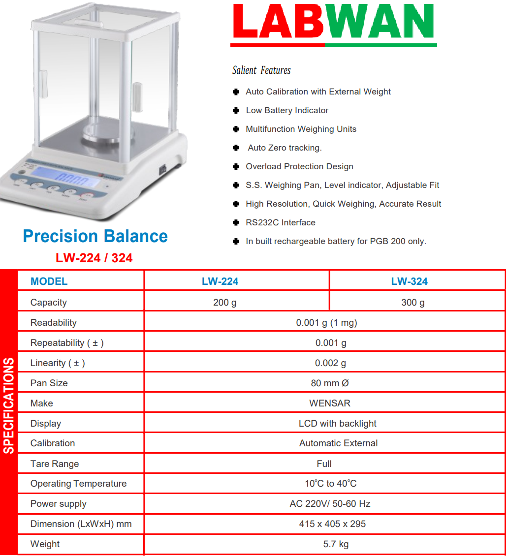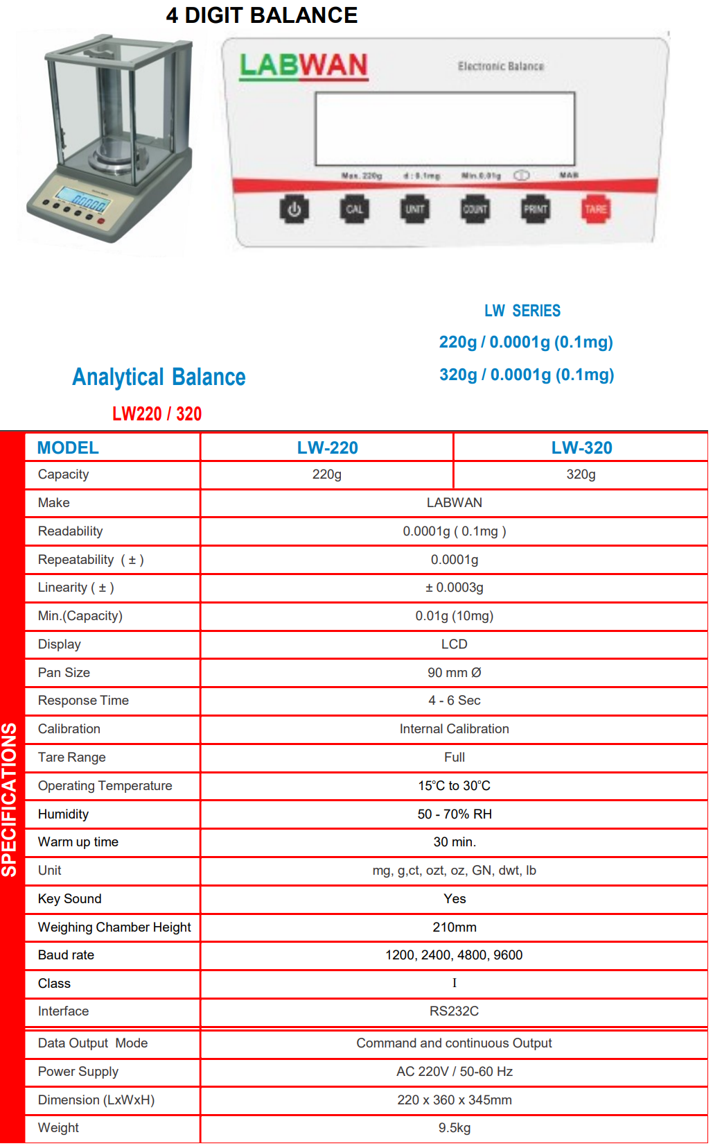 LAB SCALES (Compact Analytical Balance, Semi-Micro Balance, Micro Balance, Electronic Weighing Scales) Contact Us for Pricing and Further Details of LW-244/324 Contact Us for Pricing and further Details of LW-220/320 Contact Us for Pricing and further Details of MAB Series 5-Digit Balance